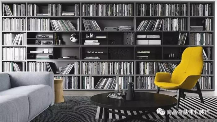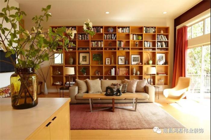 從現(xiàn)代居家環(huán)境的結(jié)構(gòu)來講,如果想完成大規(guī)模的藏書。最有效的辦法就是在客廳中制作書架墻。想實現(xiàn)這個愿望也不難。只需有效地利用電視背景和沙發(fā)背景,設(shè)置一個有型有款的書架墻,再加一個舒適的沙發(fā),就足夠了。