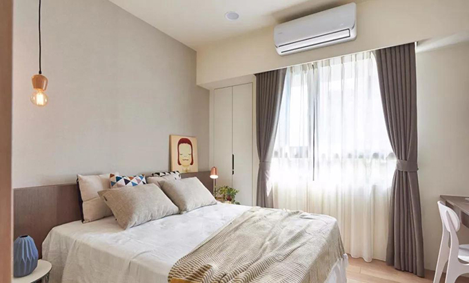 次臥空間同樣在簡約舒適的空間格調(diào),窗邊裝上一個入墻的收納柜,明亮的空間充滿了年輕的氣息。