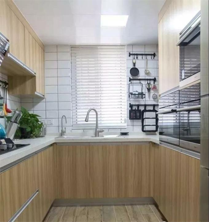▲U型櫥柜設(shè)計(jì),符合人體工程學(xué),煎、炒、烹、炸完美的廚房動(dòng)線規(guī)劃,幾平方里的淋漓盡致,廚房將不再是“戰(zhàn)場(chǎng)”,而是享受生活的“藝術(shù)空間”。
