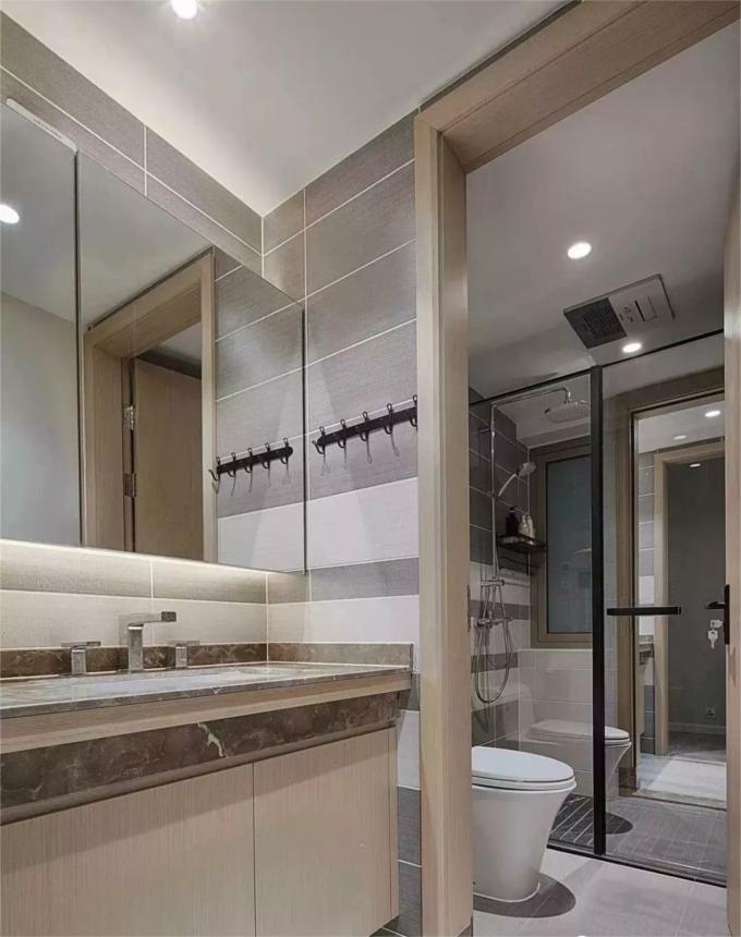 ▲干濕分離的衛(wèi)生間,即使三代同堂,也能互不干擾,輕松解決全家人的問題。