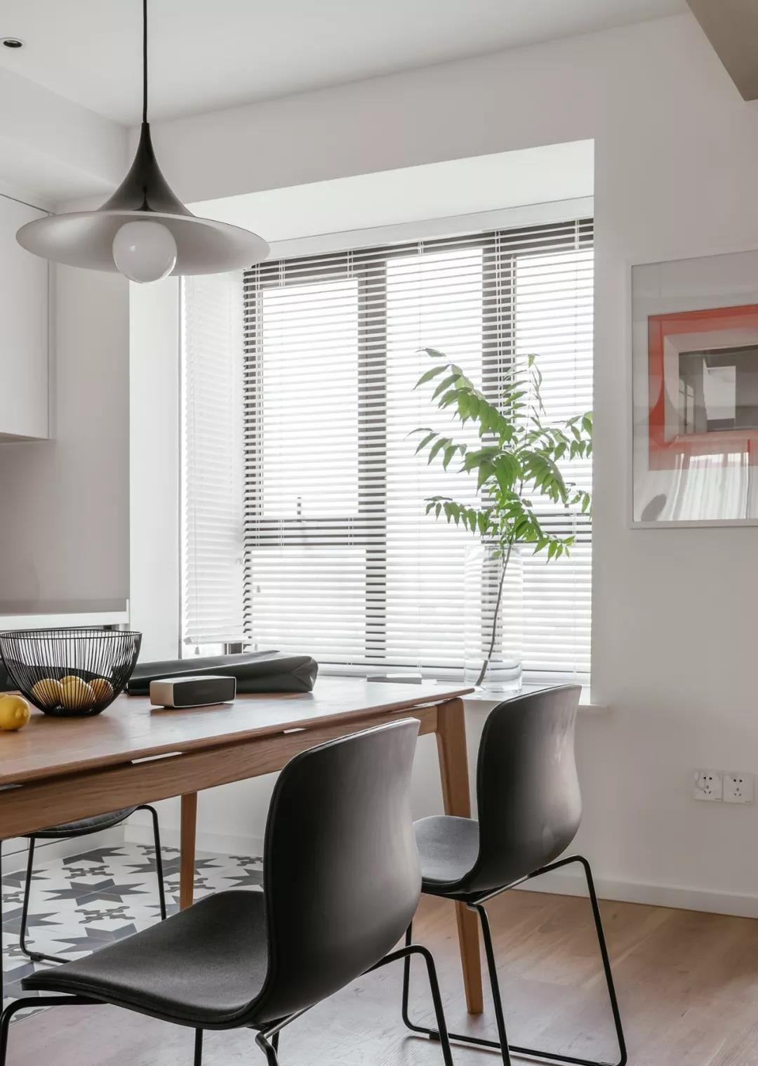|  餐廳  | 原來廚房餐廳的比例不適合居住需求,在縮小廚房增加餐廳的同時,廚房的大梁成了吊頂?shù)恼系K,所以以木梁的方式將頂面進行切割,并延伸至客廳,將梁轉(zhuǎn)換成裝飾,再結(jié)合三段等比例的木塊形成了玄關(guān)的背景。 餐廳最初看上了見南花的花磚,于是由餐廳墻面延伸至地面,地面再結(jié)合地板,形成比較好的裝飾面,地板和地磚結(jié)合的地方不宜使用大壓條,可以設(shè)置實心不銹鋼條在地板和地磚之間收口。
