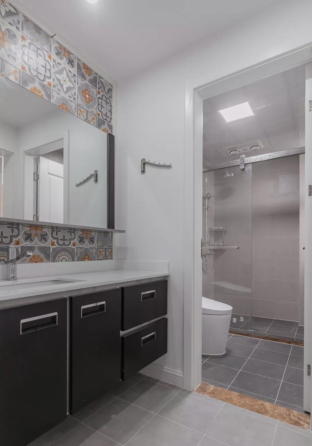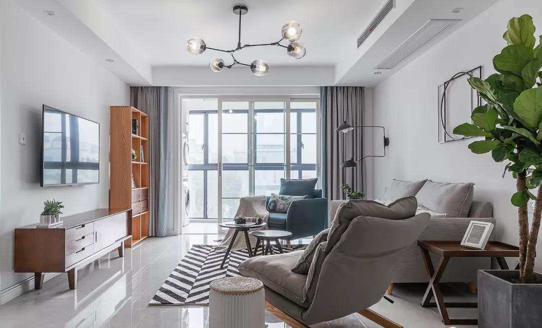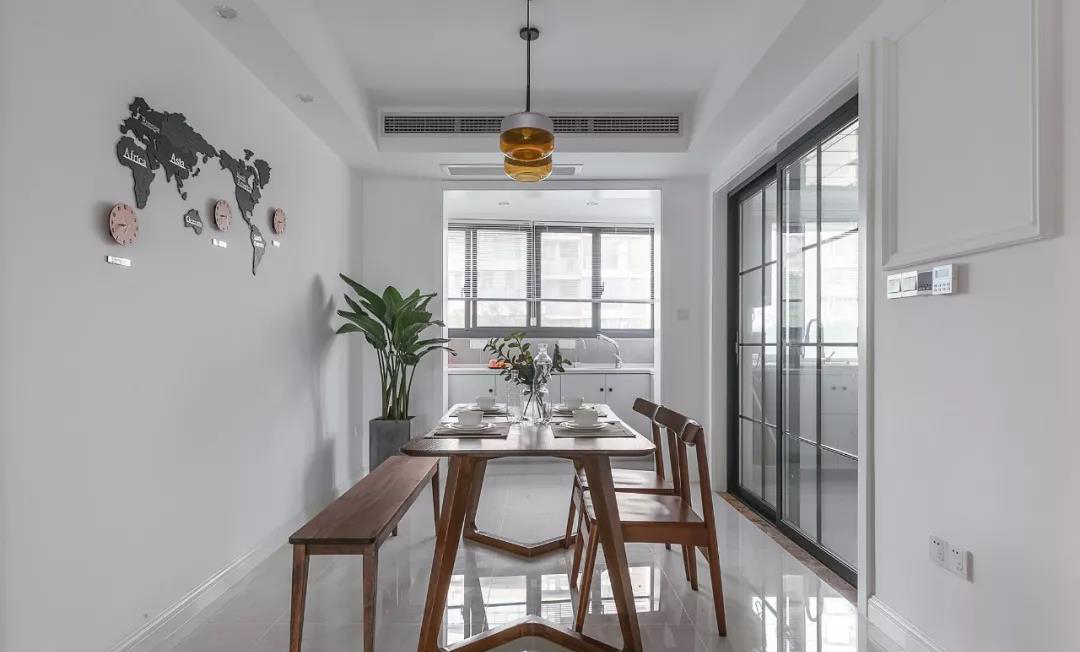 ▲ 建筑面積125平,造價(jià)25萬(wàn),入戶布置穿衣鏡,衣帽鉤,換鞋凳,轉(zhuǎn)角延伸出端景儲(chǔ)物柜 ▲ 客廳采用灰藍(lán)色家具,搭配藍(lán)灰拼接窗簾,整體色調(diào)保持一致性 ▲ 人字圖案大地毯與墻面線性墻飾,點(diǎn)綴出時(shí)尚線條感,并加入大盆綠植增添生機(jī) ▲ 電視背景不作過(guò)多修飾,以錯(cuò)落木色柜體打造簡(jiǎn)潔且具機(jī)能性的電視背景墻 ▲ 餐廳地面通鋪淺色石紋磚,留白空間搭配原木餐桌椅,空間自然敞亮 ▲ 琥珀色玻璃吊燈增添層次,世界地圖墻飾與不同時(shí)區(qū)掛鐘作背景 ▲ 打通不規(guī)則北陽(yáng)臺(tái),打造成西廚區(qū) ▲ 淺色系櫥窗搭配簡(jiǎn)約櫥柜門,干凈整潔 ▲ 次臥延續(xù)留白墻面,點(diǎn)綴兩幅簡(jiǎn)框畫作床背景,靠窗放置沙發(fā)躺椅作休閑一角  ▲ 主臥原木色地板搭配實(shí)木家具,自然簡(jiǎn)框畫點(diǎn)綴床背景 ▲ 復(fù)古綠壁燈點(diǎn)綴金色元素更顯精致 ▲ 在臥室陽(yáng)臺(tái)放一張書桌,打造陽(yáng)光閱讀區(qū) ▲ 衛(wèi)生間干濕分離,提高使用效率,花磚背景打造點(diǎn)睛之筆