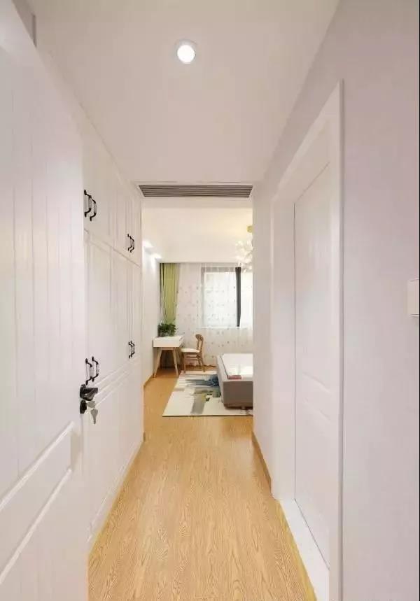 衛(wèi)生間同樣很簡潔的設計,干凈整潔就好。                                                           主臥的過道做了儲物柜子,放置換季閑置衣物。                      主臥跟客廳的風格類似,窗簾也是同款,一個完全屬于個人的溫馨空間,寧靜穩(wěn)重又浪漫舒適。