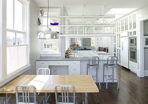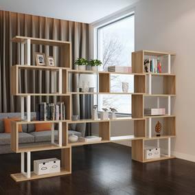 收納書(shū)架也是客廳比較常見(jiàn)的隔斷。它的好處是靈活方便,也比較透光,在日后的生活中也可以隨意調(diào)整。因?yàn)椴簧婕坝彩┕?,尺寸也隨意,多放或少放比起砸墻切磚的施工都是省事兒。