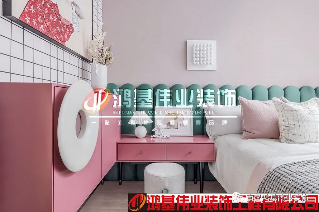 女孩房里住著一個(gè)天真浪漫的小女孩。清新的粉色和綠色打造出一個(gè)溫柔的空間。墻上張貼的大幅插畫(huà),充滿著童真的奇思妙想。愛(ài)幻想,天馬行空,小女孩的世界里住著浩瀚的星河。小巧別致小臺(tái)燈和擺飾,是女孩兒細(xì)膩精巧的小心思。