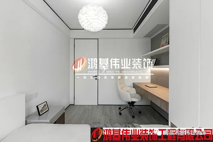 面積不大的次臥兼具書房與客臥功能,頂天立地的窄框門視覺上拉高空間感;浪漫的花瓣燈,帶來柔和靜謐的空間氛圍??看霸O計了榻榻米,通頂?shù)膬ξ锕?,虛實相間的柜門設計,絲毫不覺壓抑。床體中空,增加收納空間,儲物休息兩不誤。1.8m長大書桌,雙層擱板,暗藏燈帶,閱讀辦公都十分舒適。