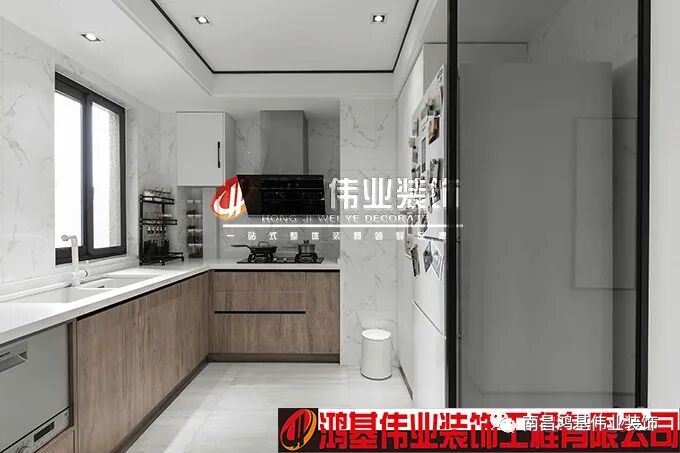 L形吧臺進一步拓展空間的功能性,它既是廚房的操作臺面也是餐廳的輔助,無論是兩人的燭光晚餐,還是親友的聚餐party,都可以輕松搞定。根據(jù)廚房的不同區(qū)域設計櫥柜,充分滿足廚房收納需要。內(nèi)嵌洗碗機,多層調(diào)料架……方方面面透露出整潔舒適的居家智慧。純凈的白色臺面與溫潤的木色櫥柜搭配,廚房整潔又溫馨。冰箱和高柜靠墻擺放,空間利用更加合理。