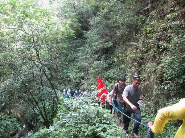 七月,透藍的天空,懸著火球似的太陽,云彩好似被太陽燒化了,也消失得無影無蹤。201477日,我們這“一大家人”再一次出發(fā),這一站,武陵巖峽谷,武陵巖峽谷位于廬山以西,地處國家生態(tài)示范區(qū)——江西武寧東南部,武陵巖峽谷漂流景區(qū)是目前江西省接待量最大的漂流景區(qū)。酷熱的天氣也抵擋不住我們前進的腳步,我們一起爬山,在艱險的地方,互相扶持,雖然汗流浹背,但依然很快樂……兩人一船的漂流過程中,危險的地方,相互幫助;打水戰(zhàn)的時候,團結(jié)協(xié)作;歡樂聲與嬉戲聲在峽谷中回蕩,讓我們忘卻了工作的壓力和勞累……