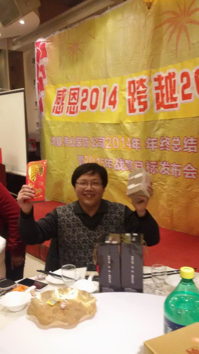 鴻基偉業(yè)裝飾公司總經(jīng)理就2014年年終總結(jié)暨2015年戰(zhàn)略目標(biāo)發(fā)表講話                            胡總為2014年度業(yè)績(jī)第一名設(shè)計(jì)師:宋建敏;年度第一名工程經(jīng)理:魏建保  頒獎(jiǎng)             總經(jīng)理助理2014年度業(yè)績(jī)第二名設(shè)計(jì)師:吳利平;年度第二名工程經(jīng)理:熊少華  頒獎(jiǎng)         本次晚會(huì)評(píng)選出2014年度“最具活力獎(jiǎng)”、“最具進(jìn)步獎(jiǎng)”、“最具敬業(yè)奉獻(xiàn)獎(jiǎng)”、“最具務(wù)實(shí)獎(jiǎng)”、“最具成長(zhǎng)獎(jiǎng)”、“最具潛力獎(jiǎng)”、“最佳新人獎(jiǎng)”                                                            抽獎(jiǎng)環(huán)節(jié),幸運(yùn)員工在臺(tái)上領(lǐng)取獎(jiǎng)品                                                    員工精彩演繹鴻基偉業(yè)裝飾司舞《我相信》                                           胡總為“2014年度優(yōu)秀員工”頒發(fā)獎(jiǎng)品,并合影留念                                                  胡總為優(yōu)秀員工派發(fā)年終分紅禮包                                                   公司股東在像我們展示他的年終分紅。。。                          胡總為2014年晉升人員頒發(fā)聘書,希望大家在新的工作崗位上再接再厲                                               最后, 鴻基偉業(yè)人齊舉酒杯,其樂(lè)融融!??!                                                                                                           南昌鴻基偉業(yè)裝飾從2004年創(chuàng)立以來(lái),至今已有11個(gè)年頭,鴻基偉業(yè)裝飾作為中國(guó)室內(nèi)裝飾行業(yè)協(xié)會(huì)會(huì)員單位,在行業(yè)中積極發(fā)揮著帶頭作用,鴻基偉業(yè)人有著“上善若水、以水為師”的精神,以質(zhì)量求生存、靠口碑樹(shù)品牌,千錘百煉打造百年誠(chéng)信鴻基偉業(yè)的使命,鴻基偉業(yè)愿景:至2022年發(fā)展成為中國(guó)一站式全包裝修模式的綜合實(shí)力最強(qiáng)和最具社會(huì)責(zé)任感的企業(yè)。