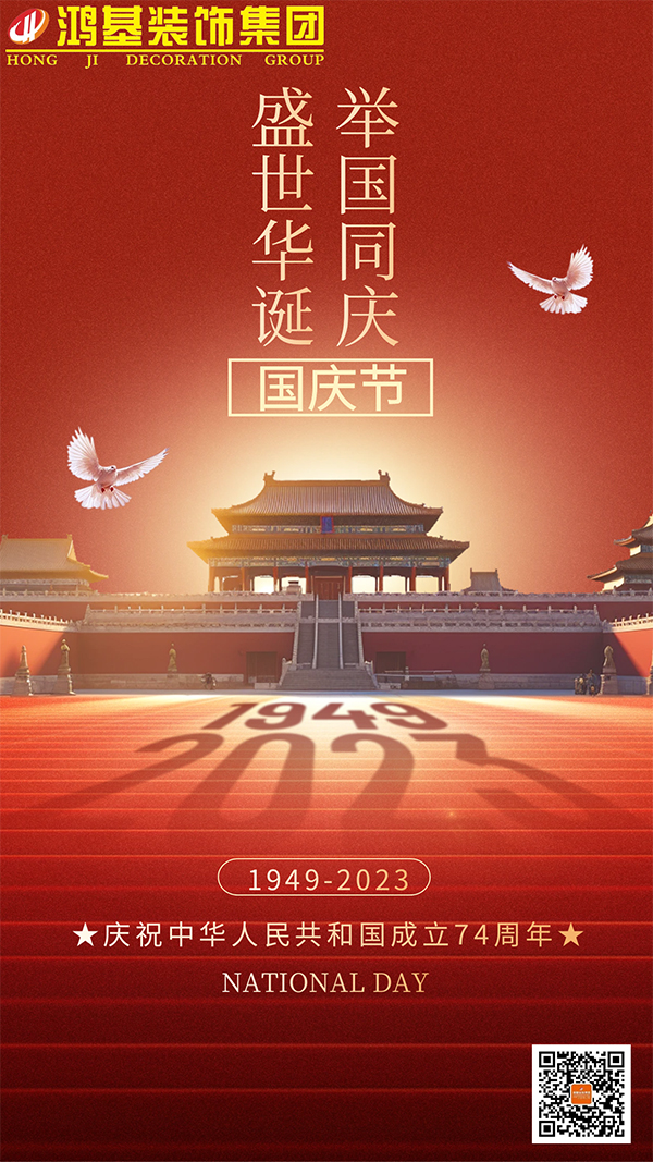 在這個舉國歡慶的日子里,鴻基裝飾集團攜全體員工,祝愿祖國母親,繁榮昌盛,民安國泰。