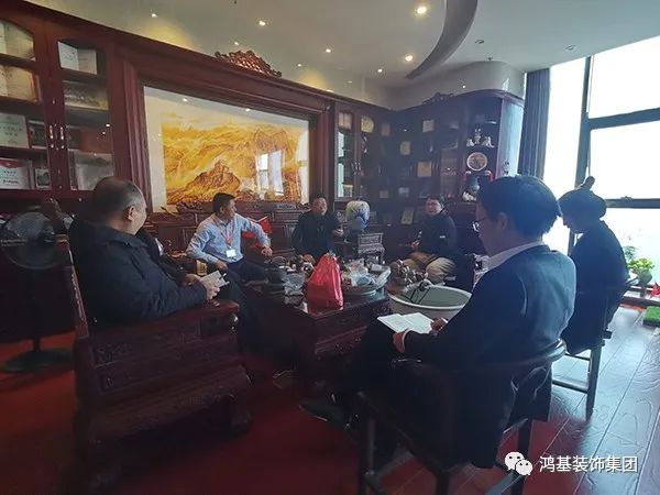 鴻基裝飾集團(tuán)董事長胡克偉對(duì)梅書記一行蒞臨表示熱烈歡迎,介紹了集團(tuán)創(chuàng)辦歷程和相關(guān)業(yè)務(wù)情況,隨后進(jìn)行座談交流。集團(tuán)運(yùn)營中心張副總、設(shè)計(jì)中心余副總一同參加座談會(huì)。