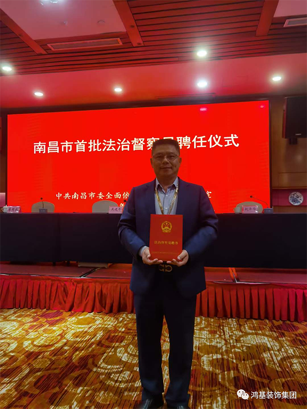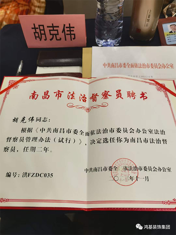 鴻基裝飾集團(tuán)董事長(zhǎng)胡克偉受聘為南昌市法治督查員