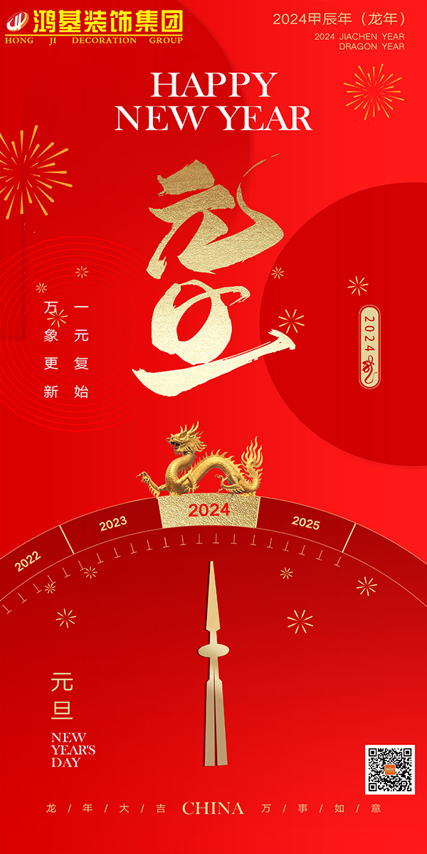 最后,鴻基裝飾集團祝愿一直支持和信任的朋友們元旦快樂?。?!祝大家在新的一年:事業(yè)如日中天,心情陽光燦爛,工資地覆天翻,“龍”光煥發(fā)。