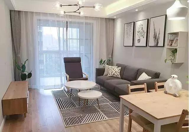 這是客廳,木藝與布藝相結(jié)合的沙發(fā),小巧玲瓏的茶幾,簡(jiǎn)單三幅掛畫,再配上雙層的窗簾,仙氣十足。