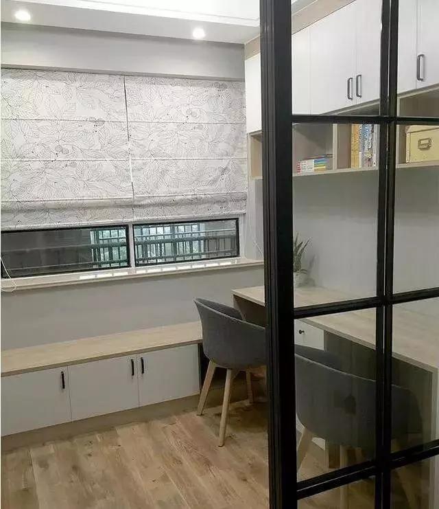 書房,黑框的設(shè)計(jì)總是很有高級(jí)感,為了增加收納,書房里也打了好多柜子,非常實(shí)用。