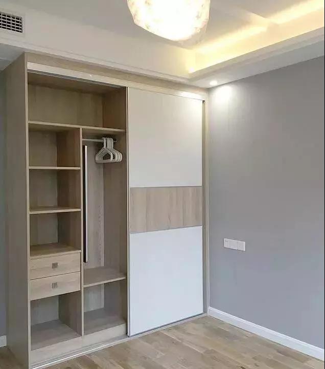 主臥的衣柜算是半嵌入式的設(shè)計(jì),隔層多,方便實(shí)用。