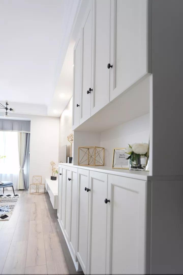 ▲ 業(yè)主是一位醫(yī)務(wù)工作者,喜歡北歐風(fēng)的簡單自由,入戶錯落的系統(tǒng)柜作鞋柜使用