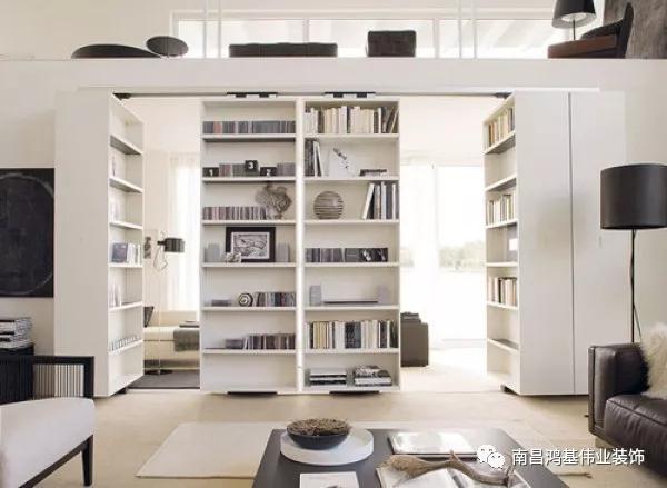 不要墨守成規(guī),以為書架只能靠墻放置,可以將大型書架搬至要分隔的區(qū)域,這樣輕易就可劃分出兩個獨立的空間;如客廳和其他空間的交接地帶,充分利用隔斷做書架收納,可有效放大空間。