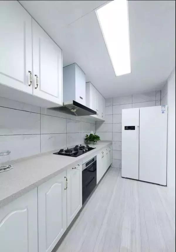 廚房形式簡潔,沒有不必要的裝飾線條,顯得更開闊些,做飯的時候倍感舒適與清爽。
