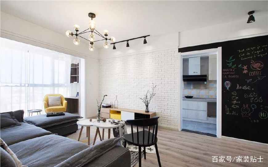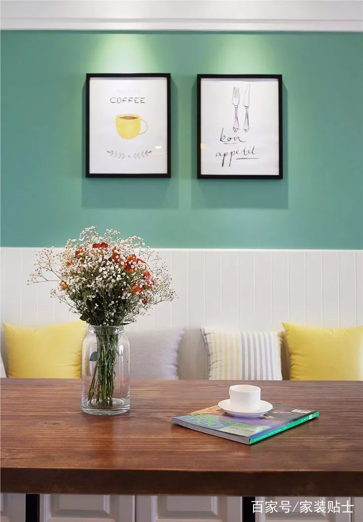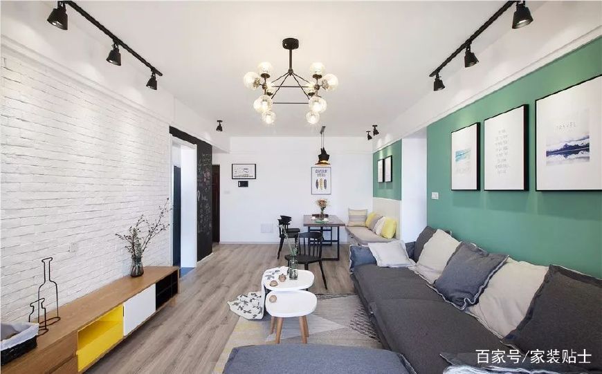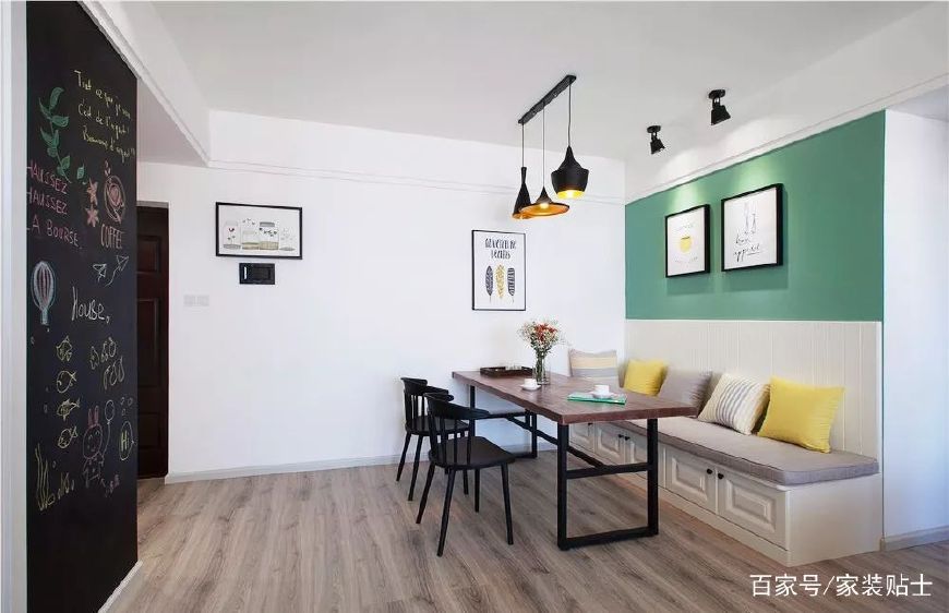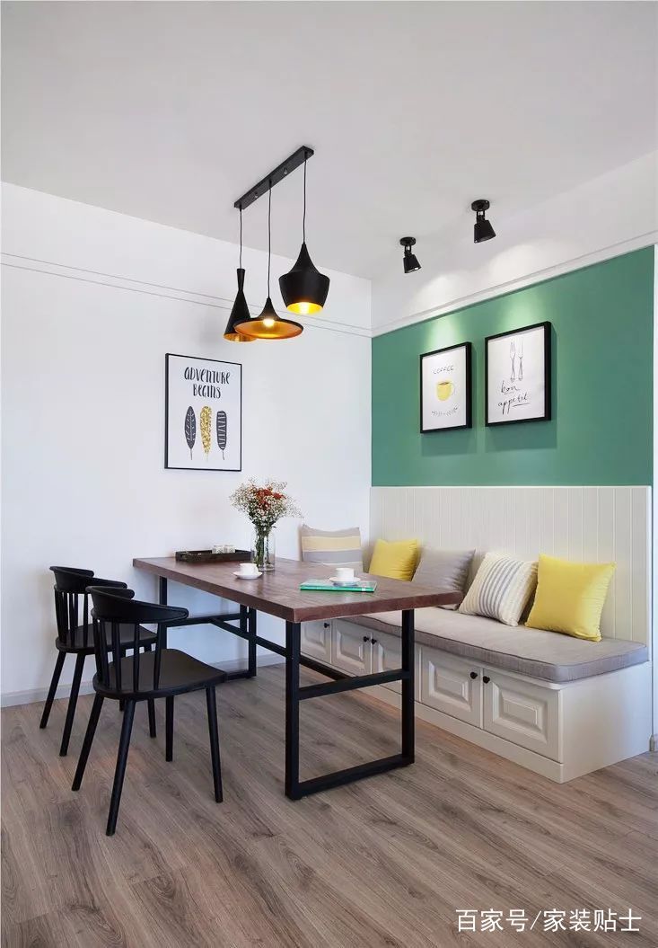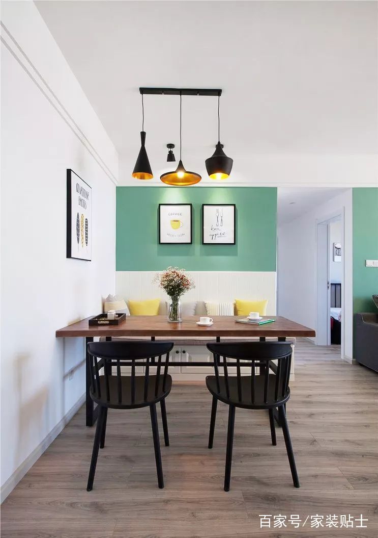 ▲ 客廳以墨綠色、白色和原木色為主色調(diào),再由灰色和鵝黃色來點(diǎn)綴局部,地板和沙發(fā)的灰色是空間中顏色的過渡與調(diào)和,更加貼近自然且不失簡潔。 ▲ 乳白色帶點(diǎn)朦朧視感的落地窗,大面積的文化磚和分子魔豆燈的搭配,增加采光的同時(shí)還顯得格外通透。 ▲ 頂面沒有過多的復(fù)雜造型,黑色明裝的軌道燈與白色的頂形成對比,簡潔而不復(fù)雜。 ▲ 電視墻的右邊進(jìn)去是廚房,為了讓空間看起來更加美觀與實(shí)用,在廚房門的旁邊刷了黑板漆,使空間簡約而不簡單,還可記錄生活的點(diǎn)點(diǎn)滴滴。 ▲ 餐廳利用卡座的形式,增加了儲(chǔ)物的功能。墻面顏色選擇和沙發(fā)背景墻顏色一樣,增加空間的連貫性。 ▲ 餐廳利用卡座的形式,增加了儲(chǔ)物的功能。墻面顏色選擇和沙發(fā)背景墻顏色一樣,增加空間的連貫性。 ▲ 鵝黃色的抱枕和墨綠色背景墻給人不一樣的溫暖。 ▲ 鵝黃色的抱枕和墨綠色背景墻給人不一樣的溫暖。 ▲ 黑板墻轉(zhuǎn)角是入戶門,簡單的百葉門鞋柜和掛畫搭配。 ▲ 主臥是由兩個(gè)房間打通設(shè)計(jì)而成的,增加了衣帽間的功能,以白、灰、粉為主色調(diào),大氣自然,寬敞舒適 ▲ 小巧可愛的床頭柜,收納生活的小零碎。 ▲ 彩色的墻畫、鐵藝燈具和椅子保留著金屬質(zhì)感,提升空間品質(zhì)。 ▲ 次臥與主臥的風(fēng)格相得益彰,灰色的墻面加黑色的鐵藝床,粉色的裝飾畫與床品,恬靜溫馨。 ▲ 衛(wèi)生間設(shè)計(jì)了簡單流暢的浴缸,洗漱臺(tái)下搭載整面收納柜,格局的布置凸顯個(gè)性化。