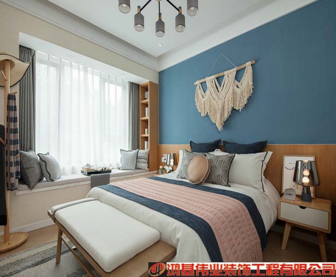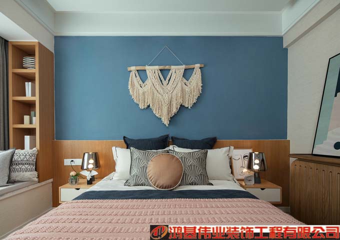 主臥的大飄窗讓人心動,陽光灑入、微風幾許一片歲月靜好,暖色床品、軟裝掛飾搭配,營造出寧靜淡雅的睡眠環(huán)境。整體色調(diào)偏暖,簡約溫暖舒適,床頭的小臺燈在夜晚照亮屬于自己的小天地。