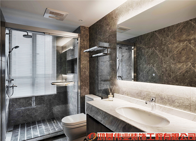 業(yè)主比較喜歡酒店風格,因經(jīng)常出差住酒店,所以對衛(wèi)生間比較注重,三分離的設計,爵士白天然石材的大型臺面使用比較舒適。