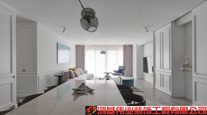 這款裝修案例,絕對(duì)讓您心動(dòng),本案子客廳、餐、廚以開(kāi)放動(dòng)線作布局,大量的線板不僅為實(shí)墻造型,部分更作為柜體門(mén)片,把收納藏入了虛實(shí)之間??臻g中的墻面腰線巧妙的取自廚具內(nèi)凹把手高度,讓所有場(chǎng)域的橫線一致性的延伸,設(shè)計(jì)師也去除了空間中絕大多數(shù)的柜體把手,以?xún)?nèi)凹式把手取代,或是隱藏于線板造型中,讓柜面保持在簡(jiǎn)單的狀態(tài),為的就是維持空間中純凈的視覺(jué)。