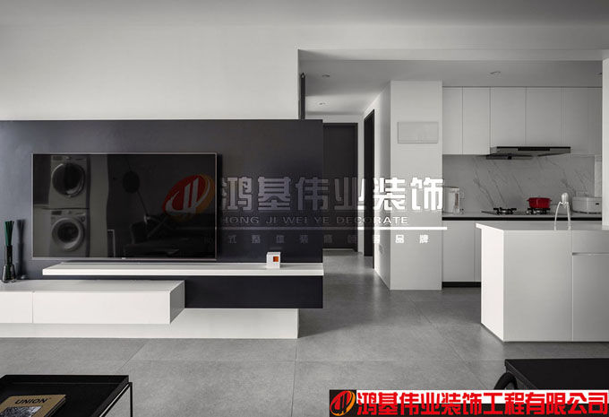 開放式廚房和封閉式柜體雜糅的空間,最大限度地減少了柜體擠壓生活空間的可能;