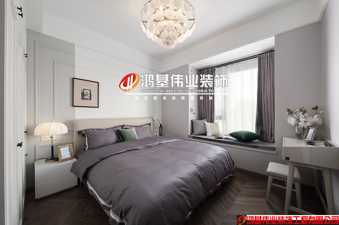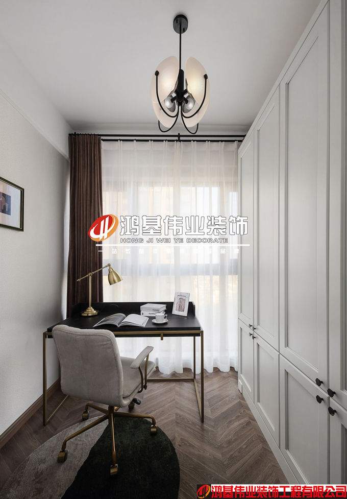 客廳的兩面墻都定制了白色的護(hù)墻板,提升了整屋的顏值,表面通過簡單的線條進(jìn)行裝飾,可以使墻面更具層次感。吊燈選購了一款黑色鐵藝燈體+煙灰色玻璃片的組合,朦朧而素雅。春天的陽光,明媚而輕柔,當(dāng)暖暖的陽光透過窗戶照射進(jìn)屋內(nèi),坐在沙發(fā)上靜靜地翻看著雜志,輕松而愜意;歲月靜好,時(shí)光在這里停泊。沙發(fā)選購了一款淺灰色的布藝軟包沙發(fā),觸感柔軟,為空間注入了一種優(yōu)雅之美。背景墻上的裝飾鏡造型別致,為整屋增添了一份藝術(shù)氣息。金色與墨綠色組合的壁燈,色澤細(xì)膩優(yōu)雅,提升了空間的設(shè)計(jì)與美感。這是南陽臺(tái),主要作為休閑空間,地面鋪設(shè)了彩色的水磨石,在光線照射的反射下,顯得溫暖而柔和,為空間增添了跳躍感。我們在一側(cè)定制了白色的柜子,與整屋色調(diào)一致,增加了收納空間。在此處種上一些綠植,閑暇時(shí)泡上一杯熱咖啡,聞著杯中散發(fā)的縷縷清香,看著窗外的景致,也是生活的一種享受。主臥吊燈選購了一款金色五金+白色玻璃的組合,整體干凈清爽,充滿高級感。床頭背景的護(hù)墻板做了分色,白色搭配淺灰的跳色,給靜謐的空間帶來一絲時(shí)尚氣息。墻上的掛畫并沒有掛在居中的位置,剛好靠近分色處,這樣更能體現(xiàn)出整面墻的層次感。兒童房選購了一款云朵床,床頭就像米白色的云朵,像棉花糖一樣,白白軟軟的,給孩子帶來一種被呵護(hù)的感覺,促進(jìn)入眠。墻上的卡通掛畫,增添了屋內(nèi)的童趣感。我們在一面墻上定制了多彩的壁紙,三角形+豐富的色彩,可以給孩子帶來更多遐想的空間。房間內(nèi)購置了一款兩門衣柜,采用了弧形元素,圓潤可愛,增加了屋內(nèi)的收納空間。窗簾采用灰色與黃色的搭配,瞬間提亮了空間,增強(qiáng)了視覺感;樹葉狀的造型也增加了屋內(nèi)的趣味性。書房的一面墻定制了一排白色的柜子,與整屋色調(diào)統(tǒng)一,大大增加了屋內(nèi)的收納空間。書桌融合了實(shí)木與金屬元素,簡約大方;搭配的辦公椅功能齊全,躺靠舒適,優(yōu)雅大氣。地上搭配的圓形地墊,為空間帶來一絲暖意。