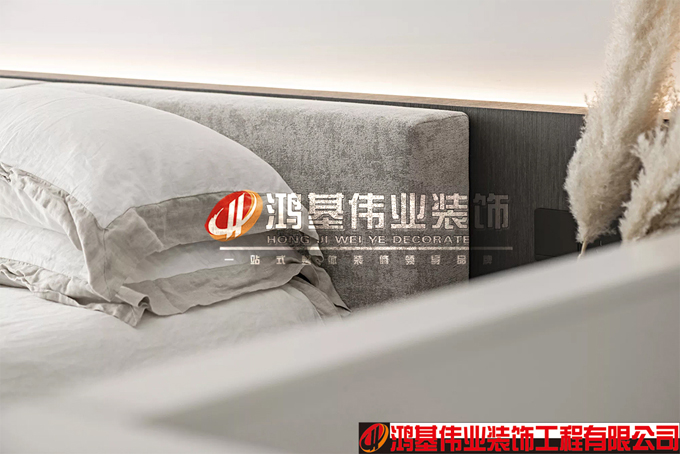 臥室之內(nèi),純凈的白,延續(xù)著整個空間的素雅,以溫和、包容的方式,帶來最大化的明快與利落。完全放開的臥室空間,帶來另一份起居新體驗,可謂日常生活里的小小異調(diào)與冒險。亞麻拼邊的床品,從觸覺中感知日常生活里的細膩、優(yōu)雅與從容;可調(diào)節(jié)的間接燈光,隱隱灑下,更添一份彌漫的溫情。