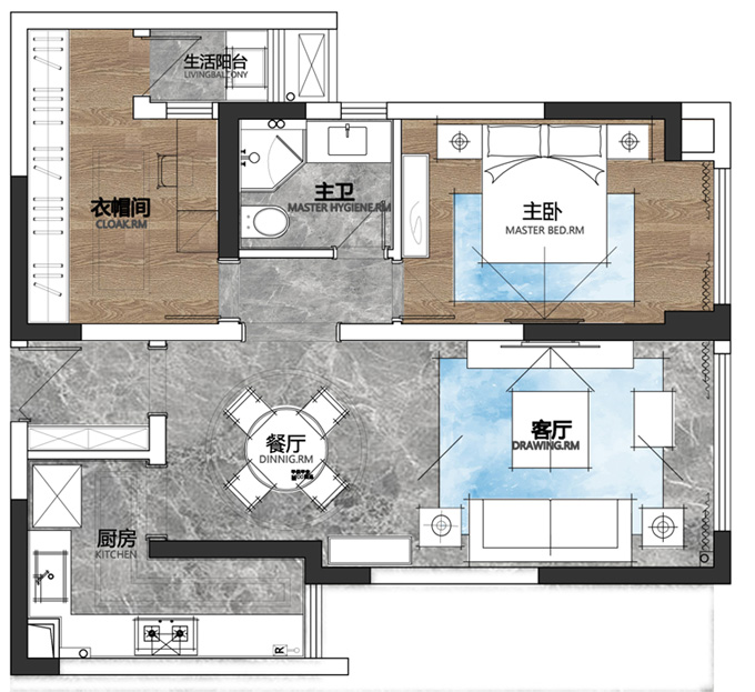 業(yè)主小姐姐喜歡聚集好友在家“露一手”自己拿手的廚藝,和朋友們的交流是她喜歡的活動,所以設計師果斷為業(yè)主考慮了圓形桌子,讓小姐姐與朋友們的互動更加愜意自在。