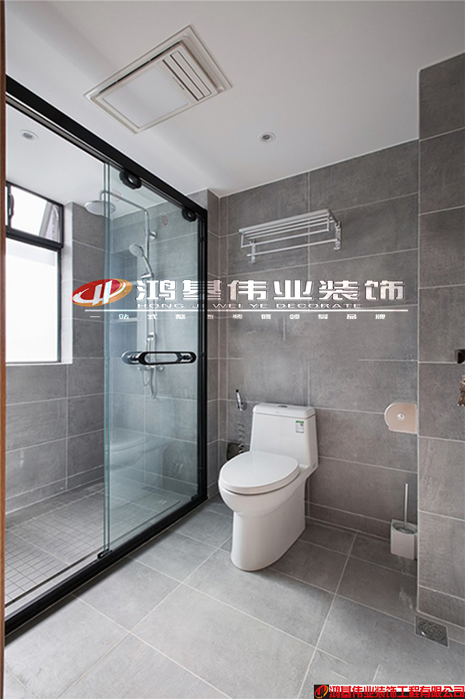 考慮到衛(wèi)生間的干濕分離,以及保證空間的合理性,浴室采用了灰色系單色磚來鋪貼,以保證空間的視覺效果,不顯局促狹小,簡(jiǎn)約至此,又不失格調(diào)。