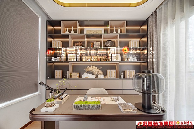圖4.亮點(diǎn):書房從陳列到布局,從色調(diào)到材質(zhì),都表現(xiàn)出雅致的特征,窗簾選用通透感強(qiáng)的淺色紗簾既能遮光又能讓將陽光折射變得溫婉柔和。